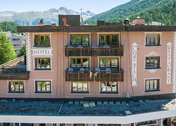 Katholische Kirche'ın hemen yanında yer alan otel, Saint-Moritz şehir merkezine yaklaşık 5 dakikalık yürüme mesafesindedir. Otel göllere, ormanlara yakın sessiz bir yerdedir. Engadiner Müzesi'nın hemen yanında yer alır. Hotel Corvatsch, Lugano havaalanına 180 km ve Via Salet otobüs durağına 400 metre uzaklıktadır.